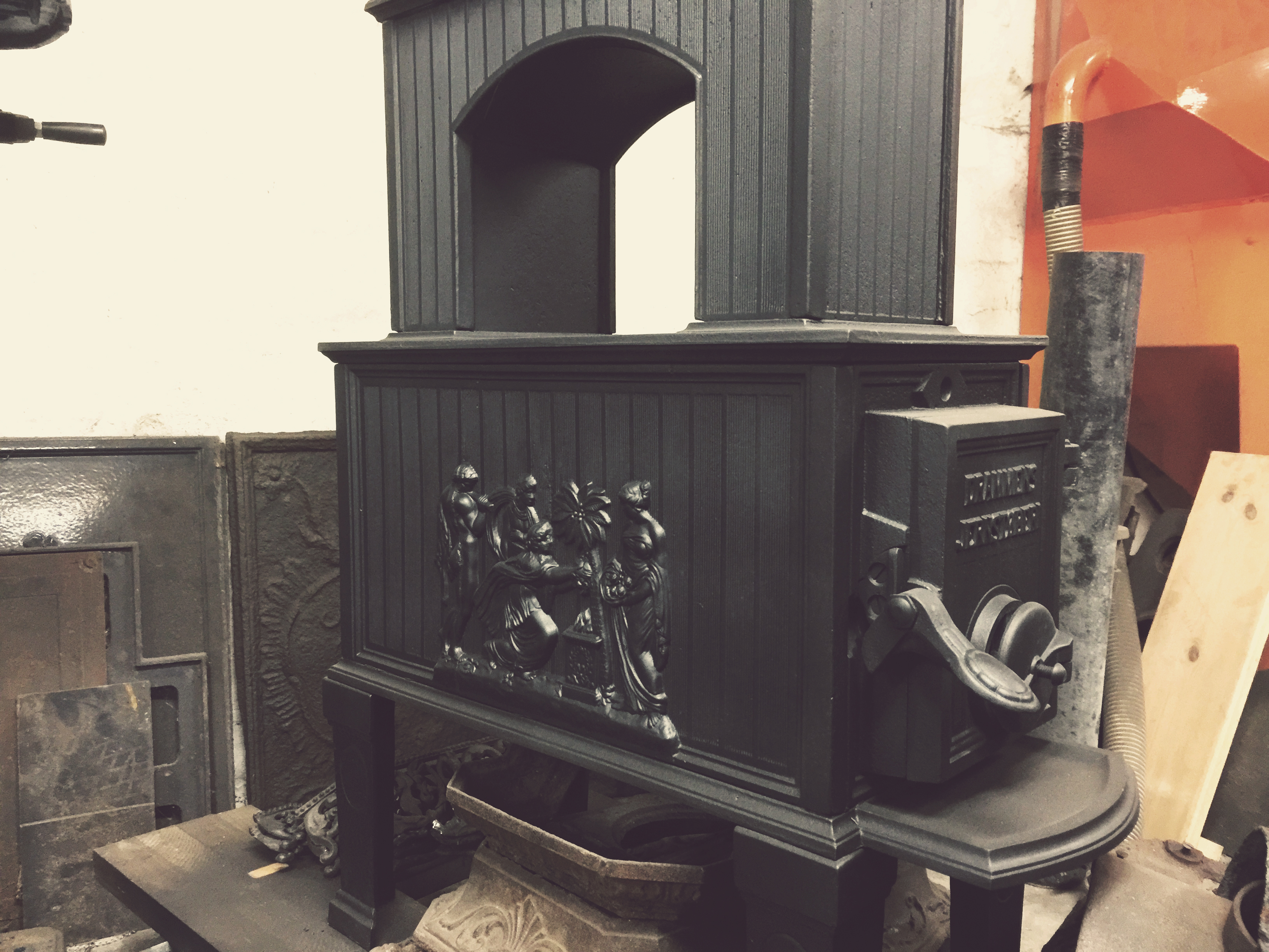 Når vi skal renovere en brændeovn, tager vi den altid med hjem på vores eget værksted. Her kan vi bruge den tid, der er nødvendig, for at få det bedste resultat. Skader udbedres. Rust fjernes. Bortkommende dele enten fremskaffes som original reservedel eller genskabes af tidstypiske materialer. Som uddannet klejnsmed, kan langt de fleste reservedele genskabes på eget værksted.